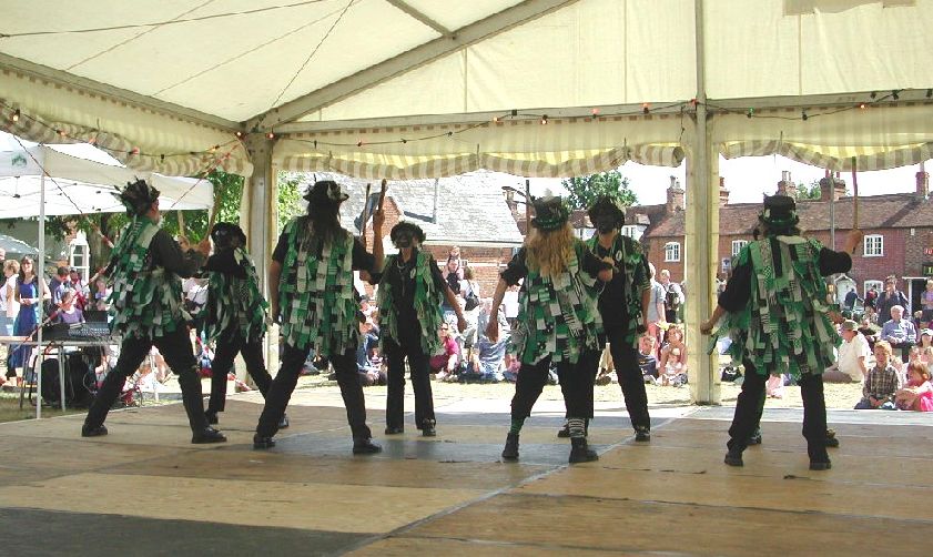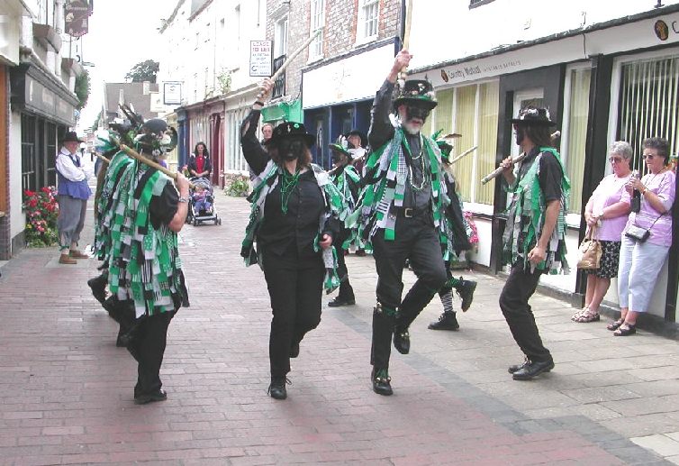 Hay-on-Wye, with Jill, Linda, Jenny and Chris dancing, plus Doug,