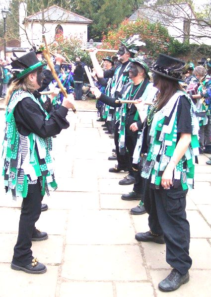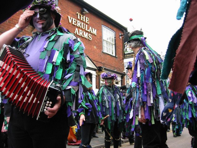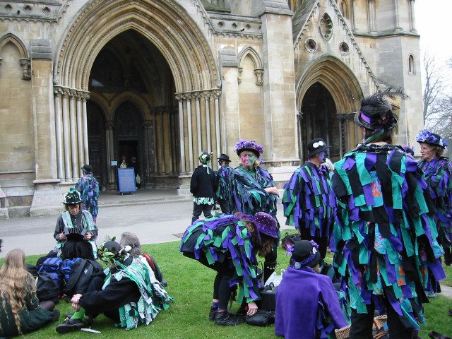 Lined up outside St Albans Abbey, ready (in most cases) to dance