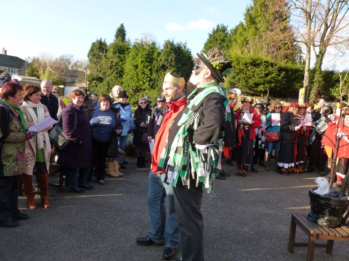 The wassail cake (baked by Pam) is distributed, and whoever gets