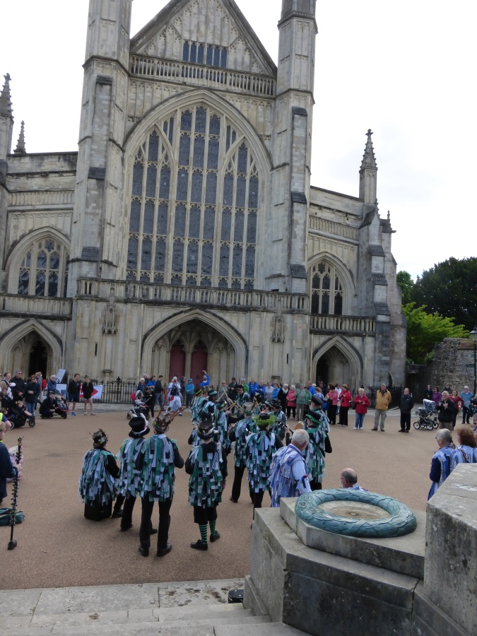 OBJs team for the day, posed outside Winchester Cathedral, with