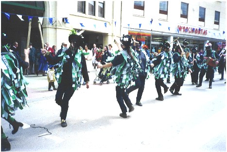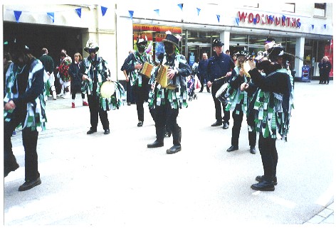 (trombone) and Ann (accordian) are hidden, and Nikki is dancing on