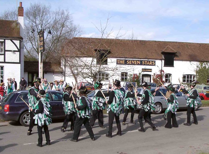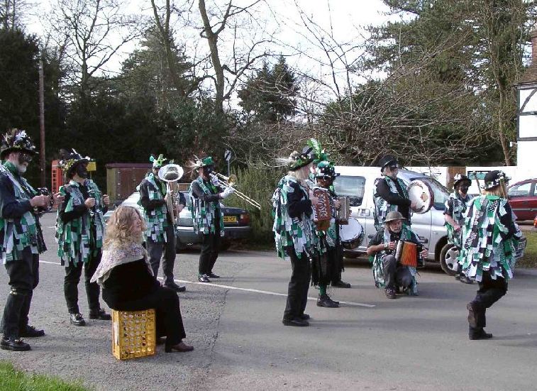 Dancing Sheepskins around 3 hapless (but not hatless) volunteers