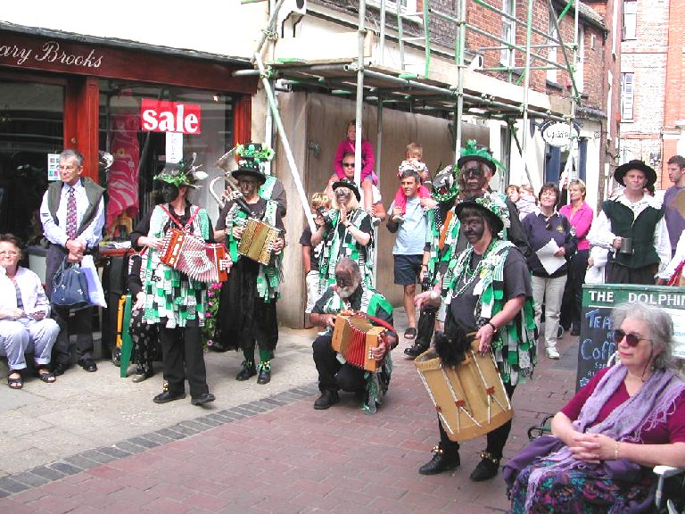 Hay-on-Wye, with Jill, Linda, Jenny and Chris dancing, plus Doug,