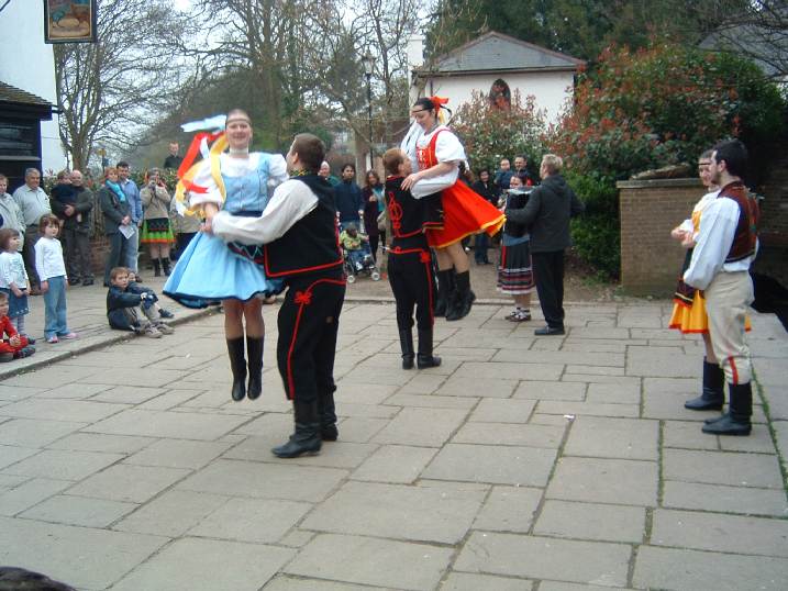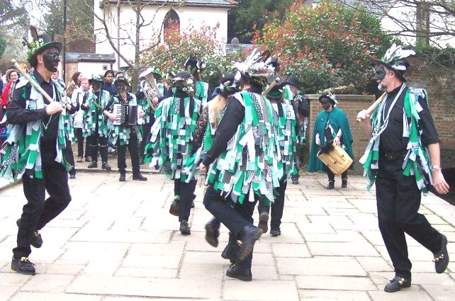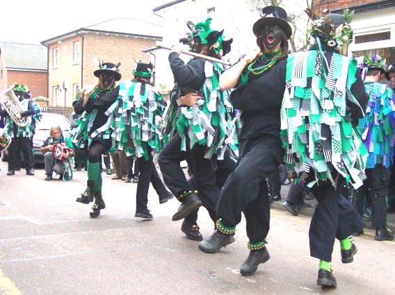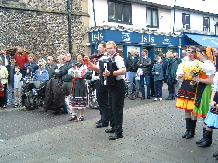 Lined up outside St Albans Abbey, ready (in most cases) to dance