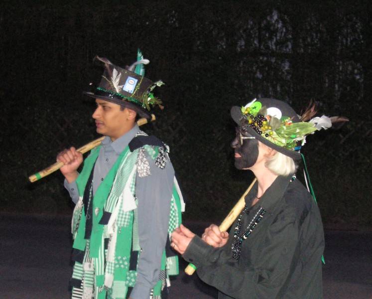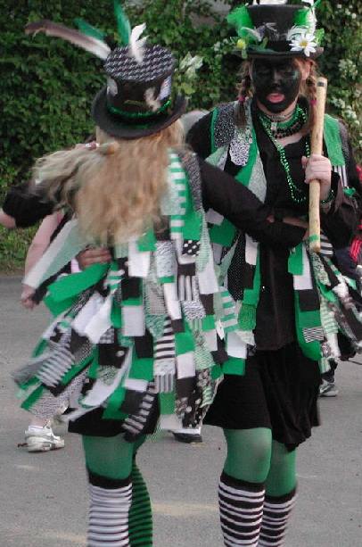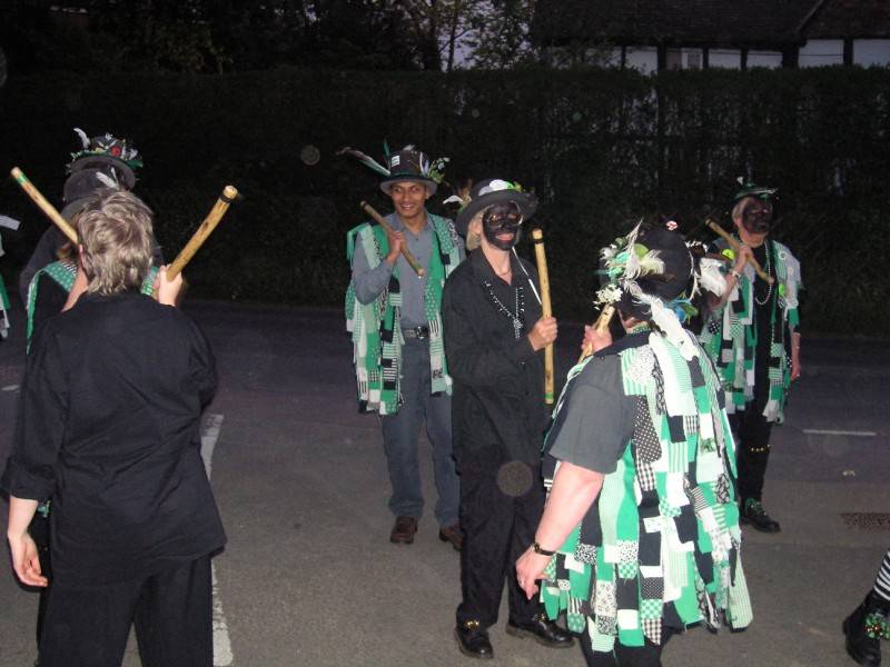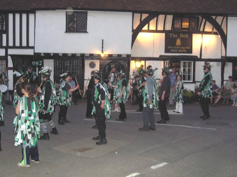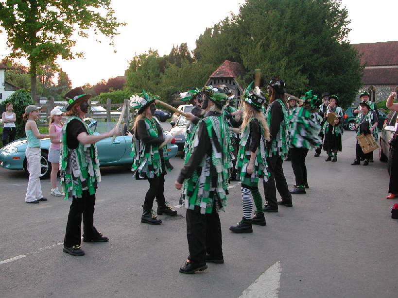 Dancing in the street outside the 14th century pub, with the pound and the church in the background.