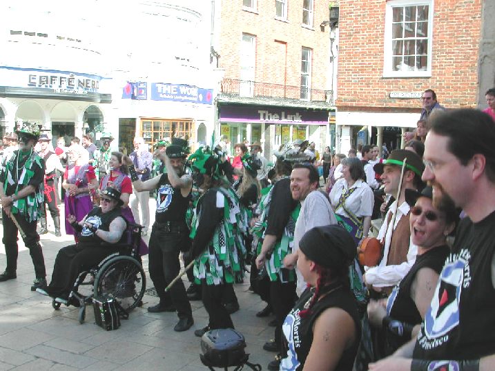 DaveK, Abi, Colin, Jenny, MikeG and Chris dancing Hay-on-Wye