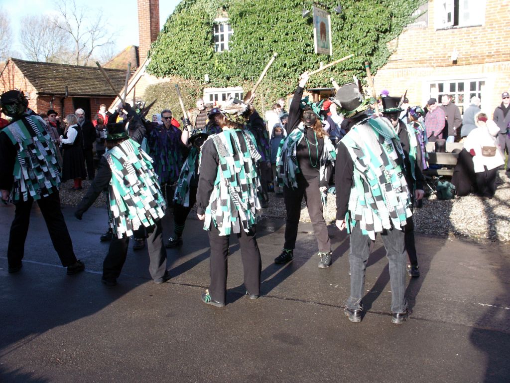 We were obviously joined by Wicket Brood, Basing Clog and Kintbury Morris, for what turned out to be our last wassail at The Bull, Stanford Dingley