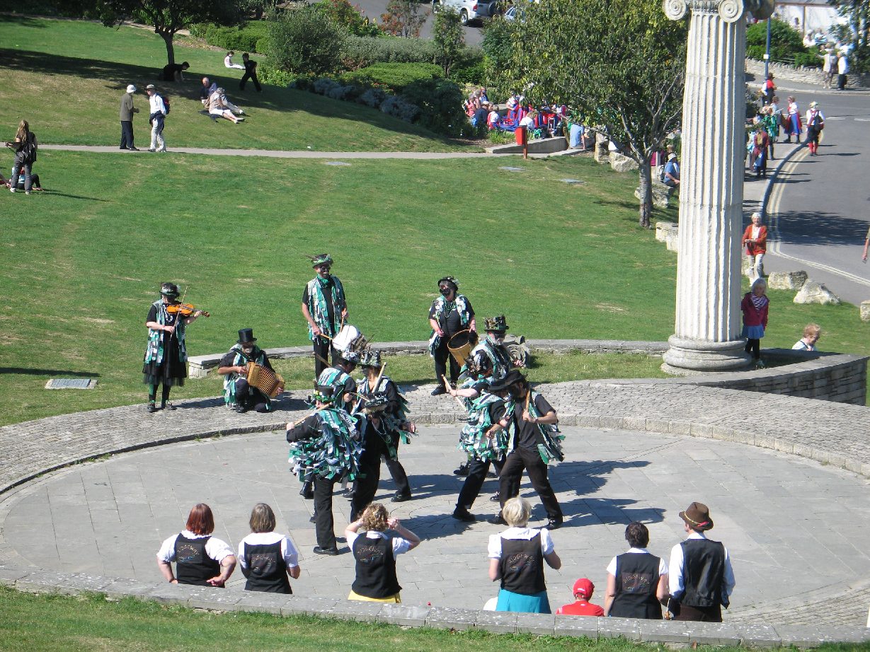 at Corfe Castle, dancing in the sea, massed Worcestershire Monkeys,
