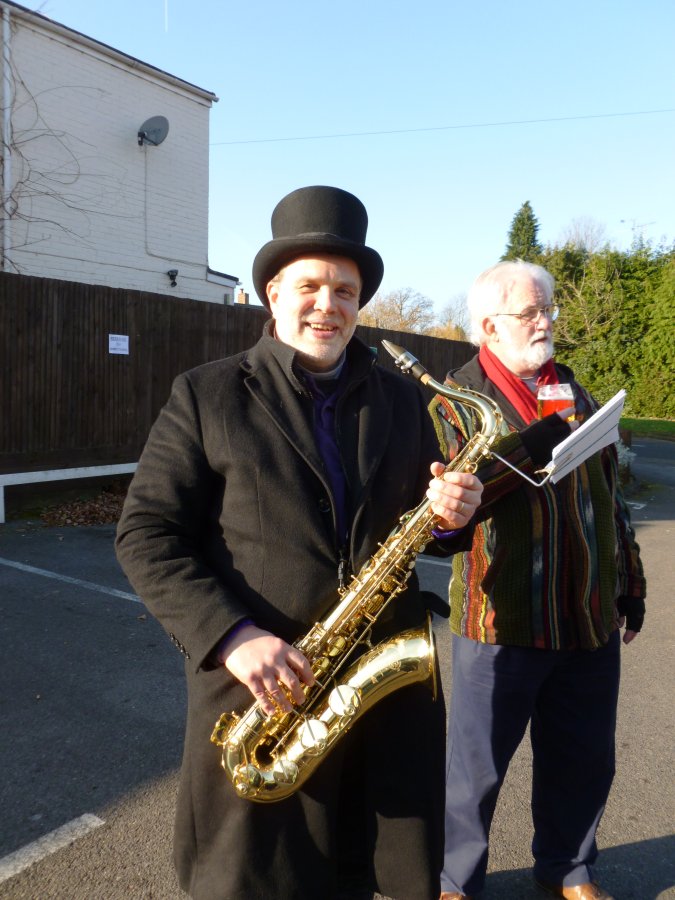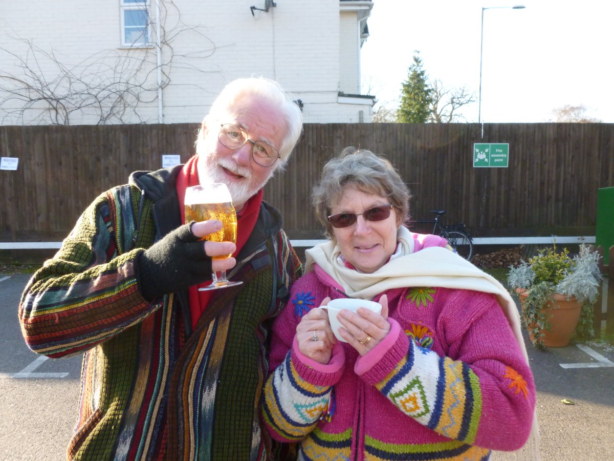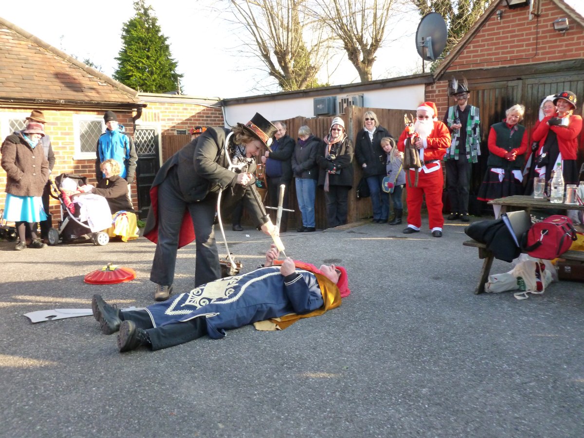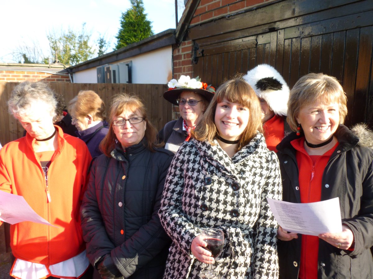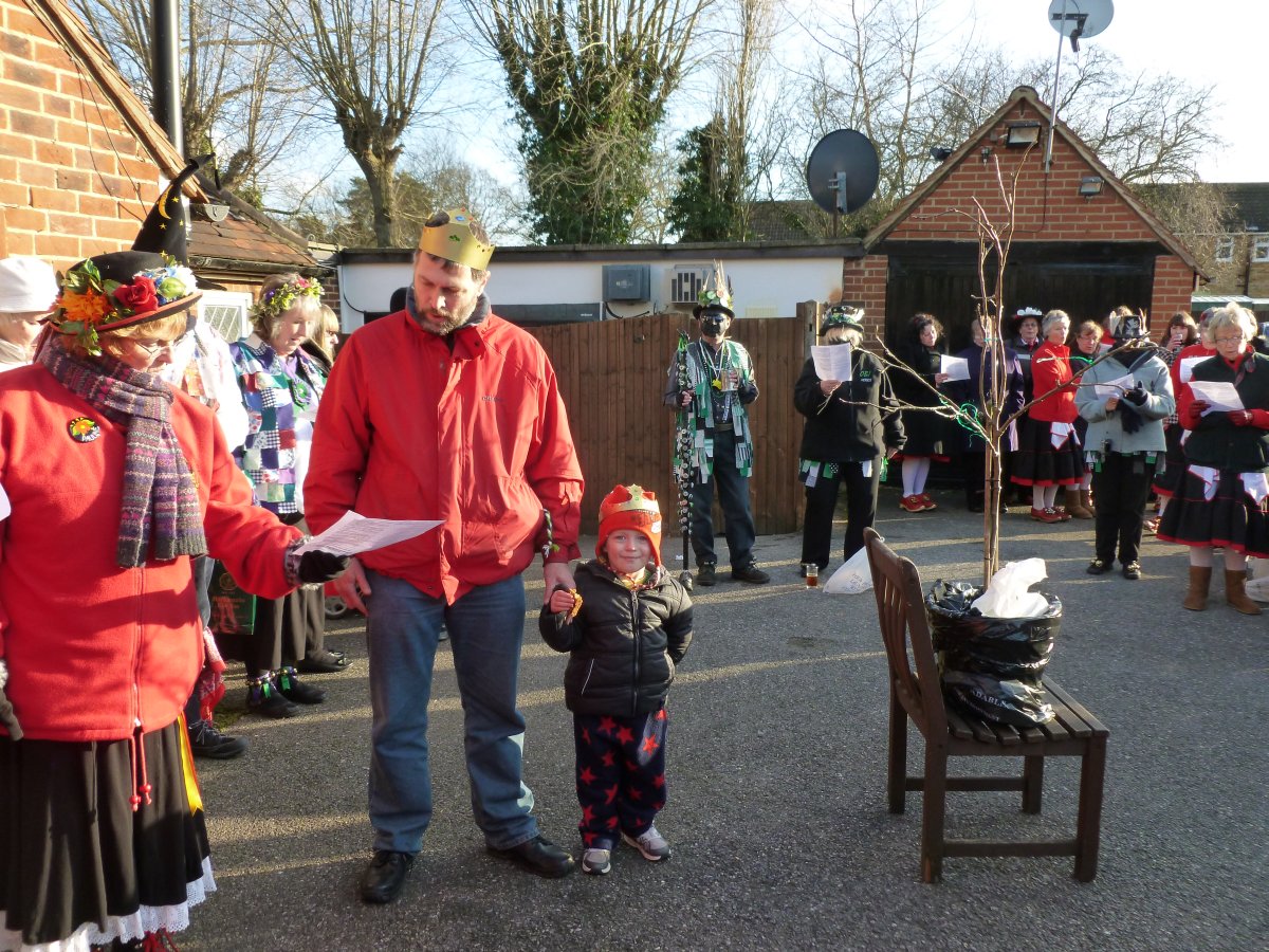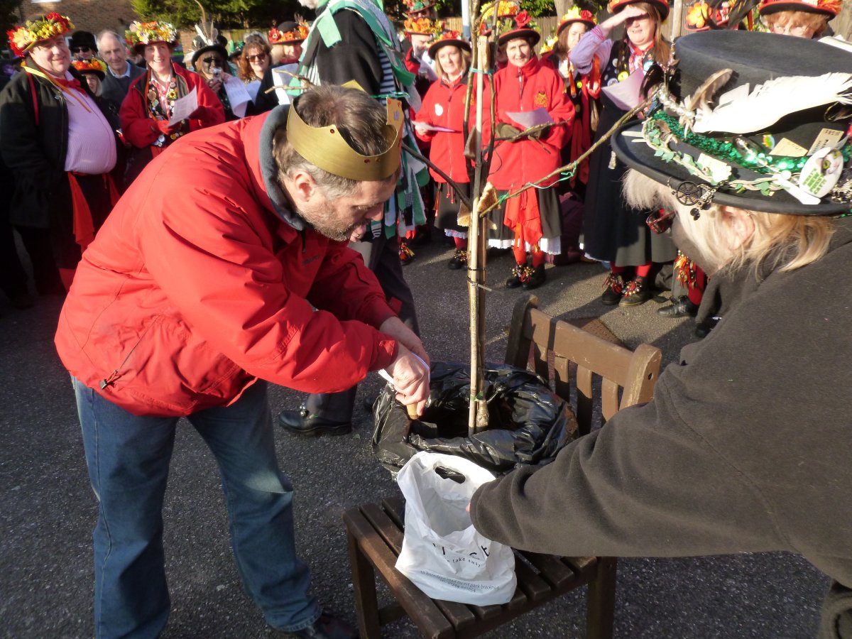 The wassail cake (baked by Pam) is distributed, and whoever gets