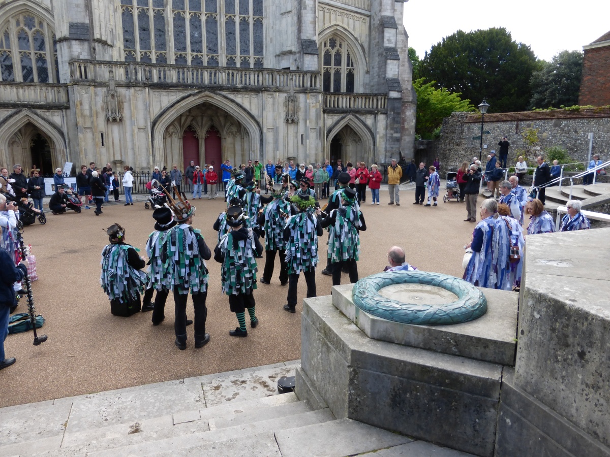OBJs team for the day, posed outside Winchester Cathedral, with