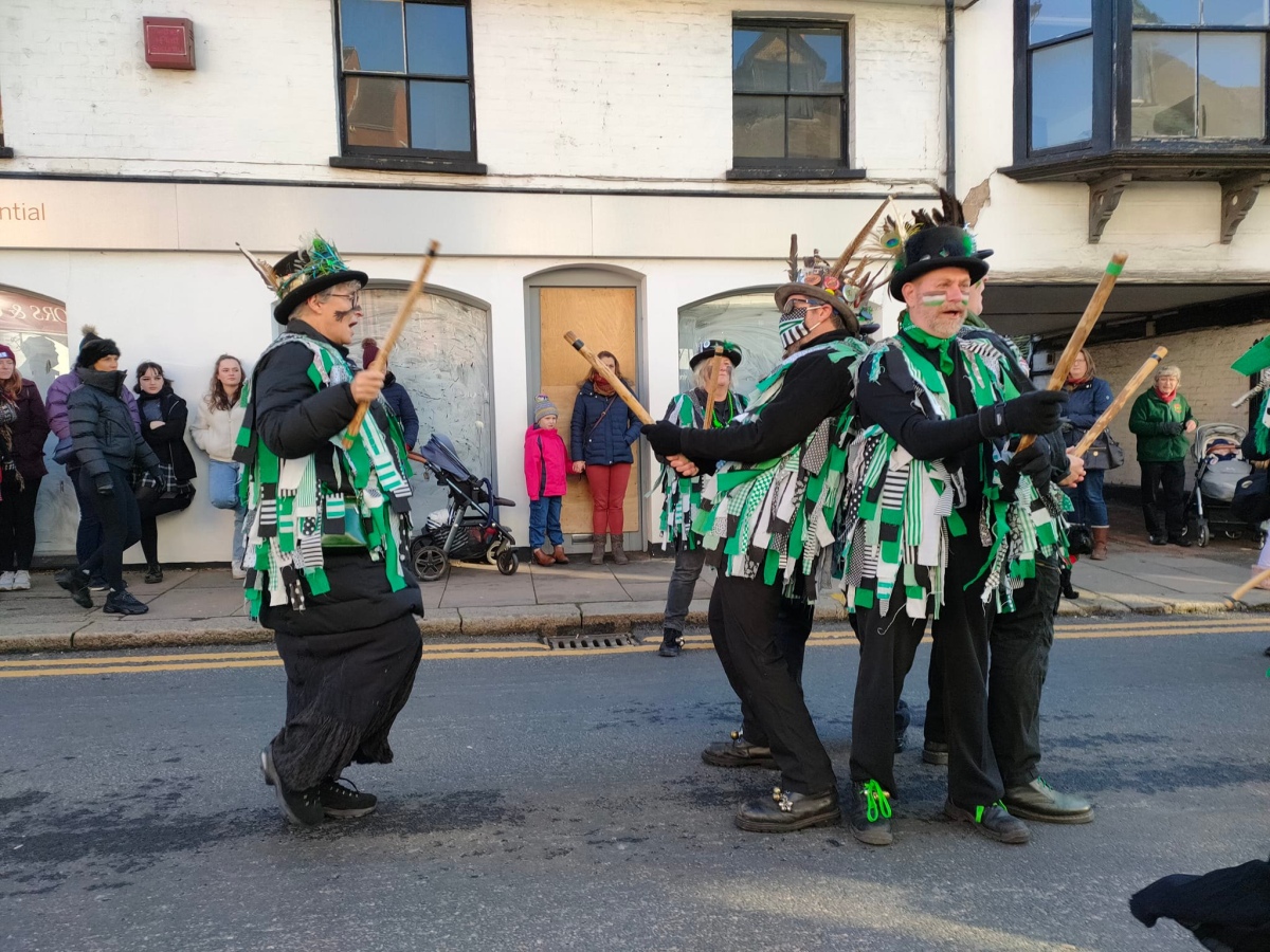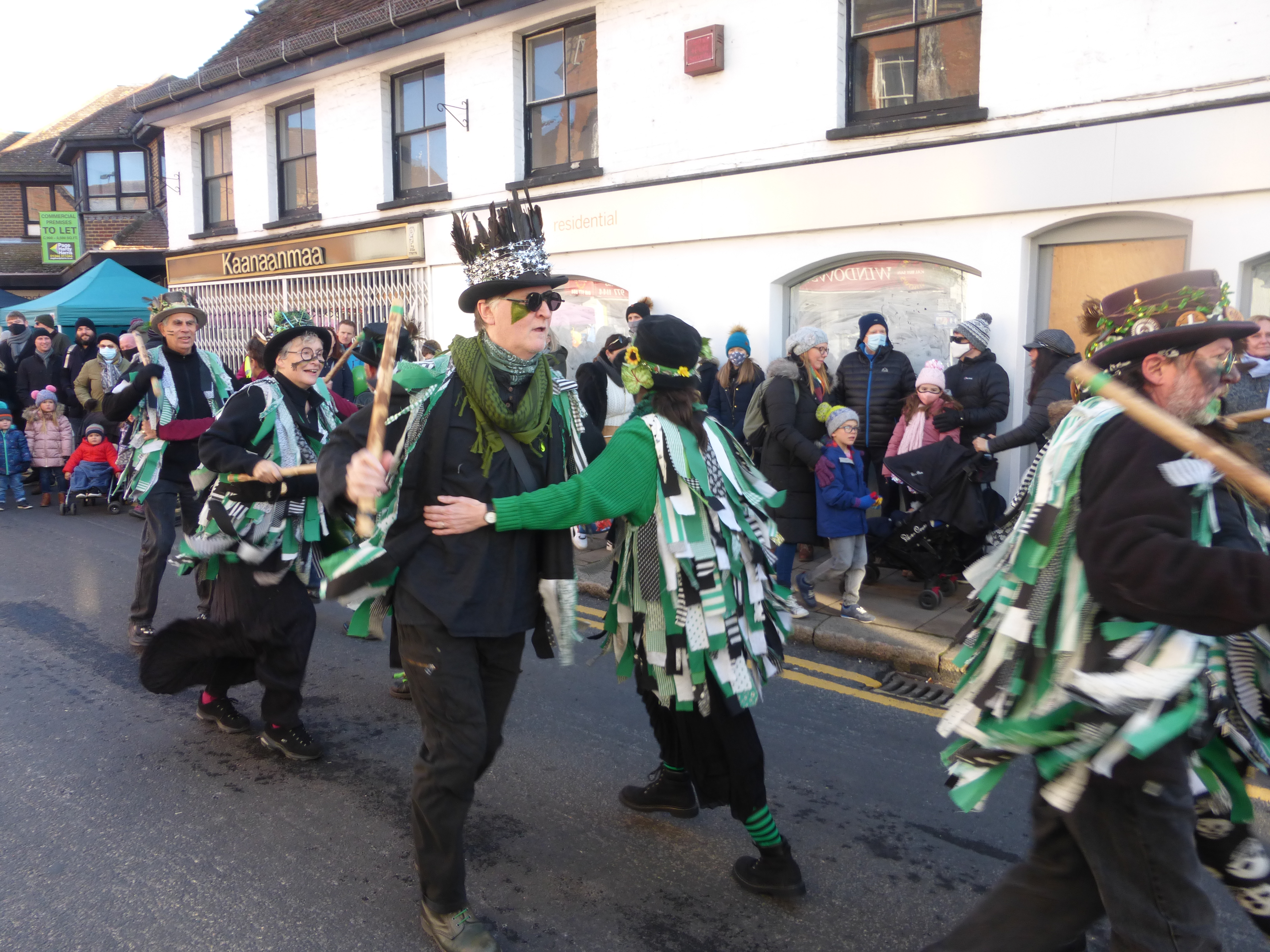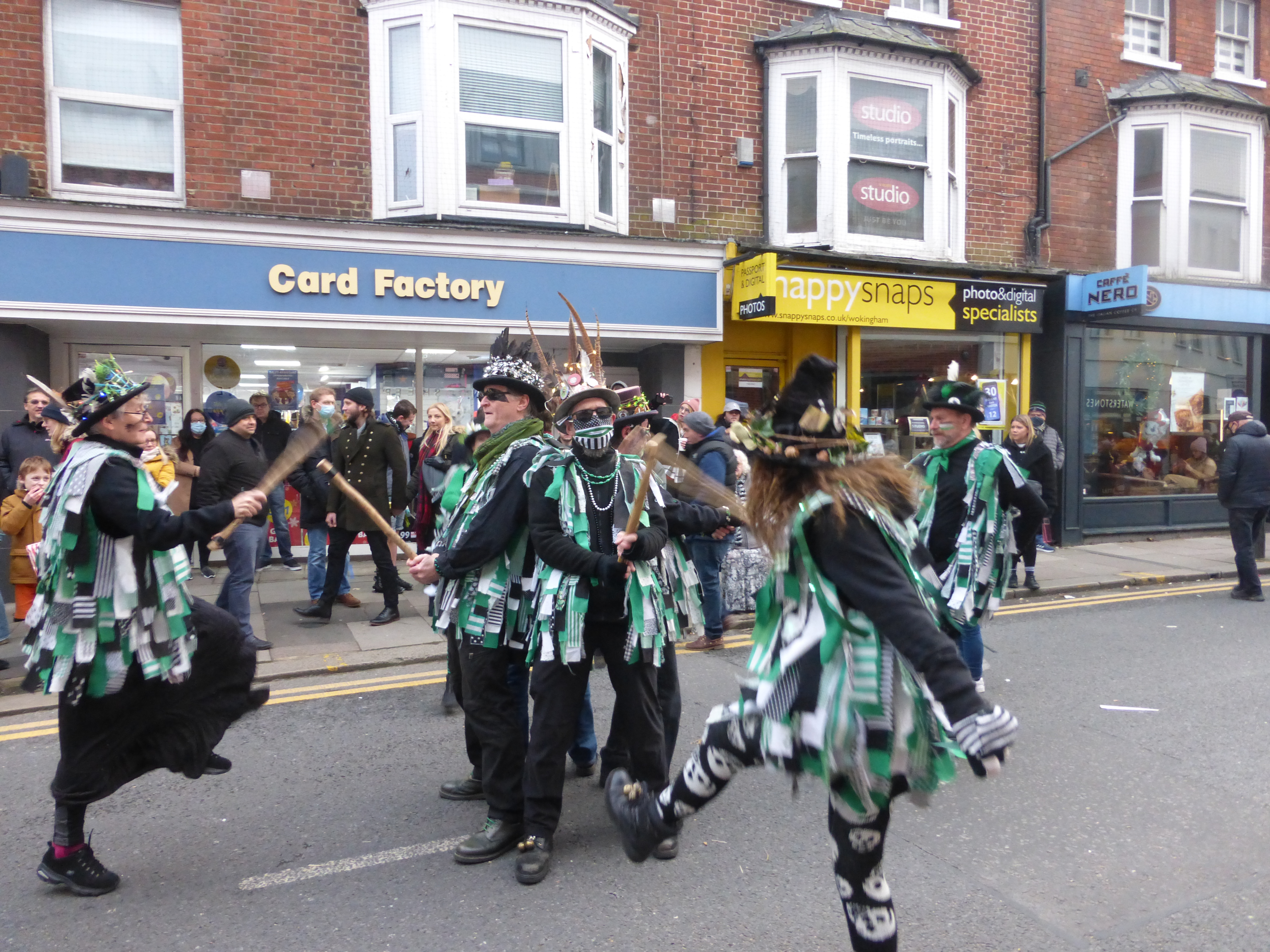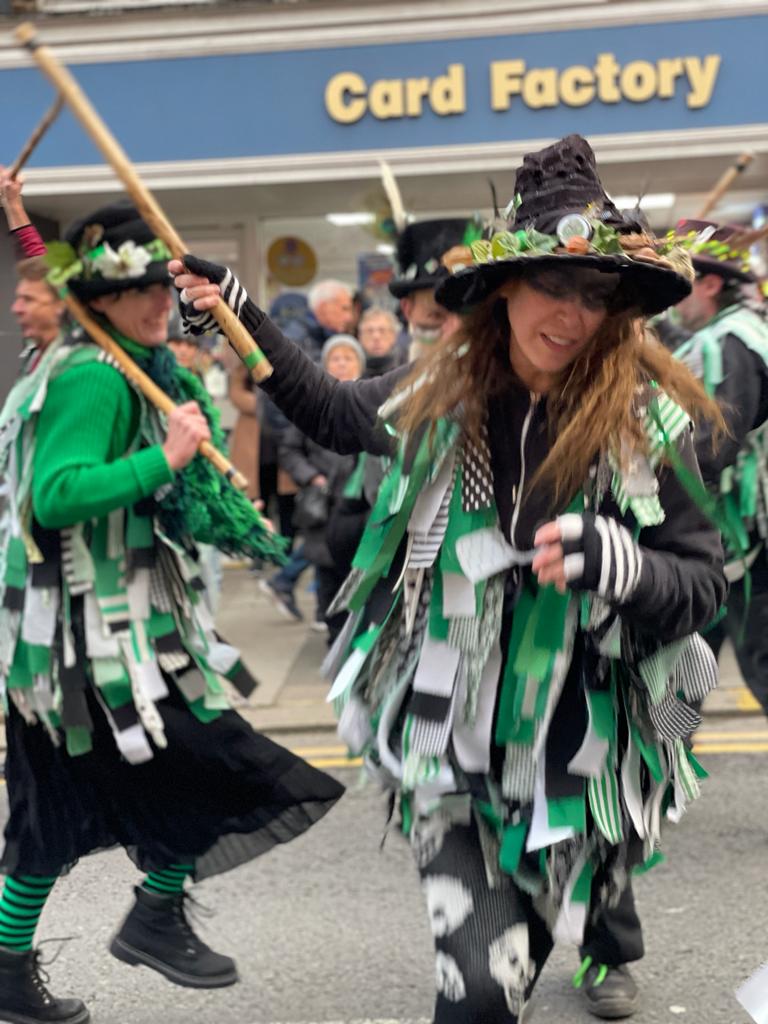 A somewhat scaled-down Wokingham Winter Carnival due to Covid. The morris was limited to four sides, sharing two dance spots, and there was no procession at the end of a long day (gutted!).