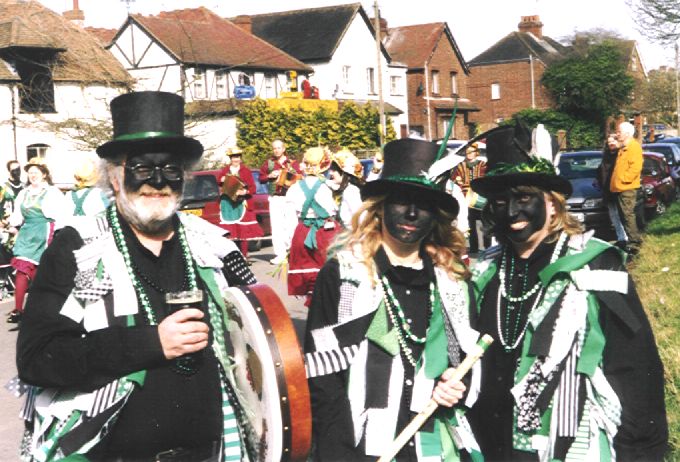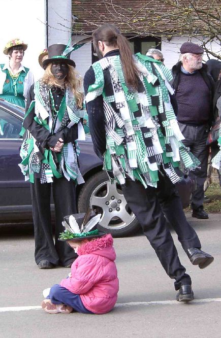 Dancing Sheepskins around 3 hapless (but not hatless) volunteers