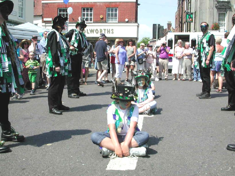 Three members of Swanage Bay Morris await their fate as we
