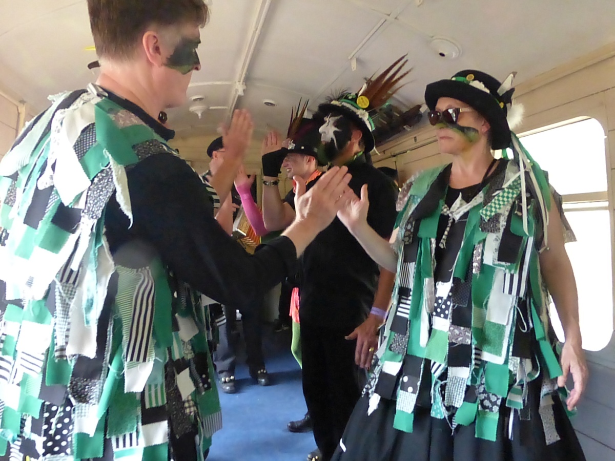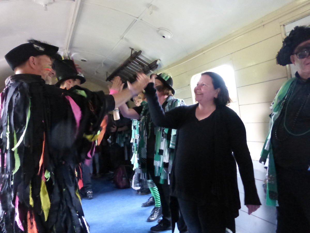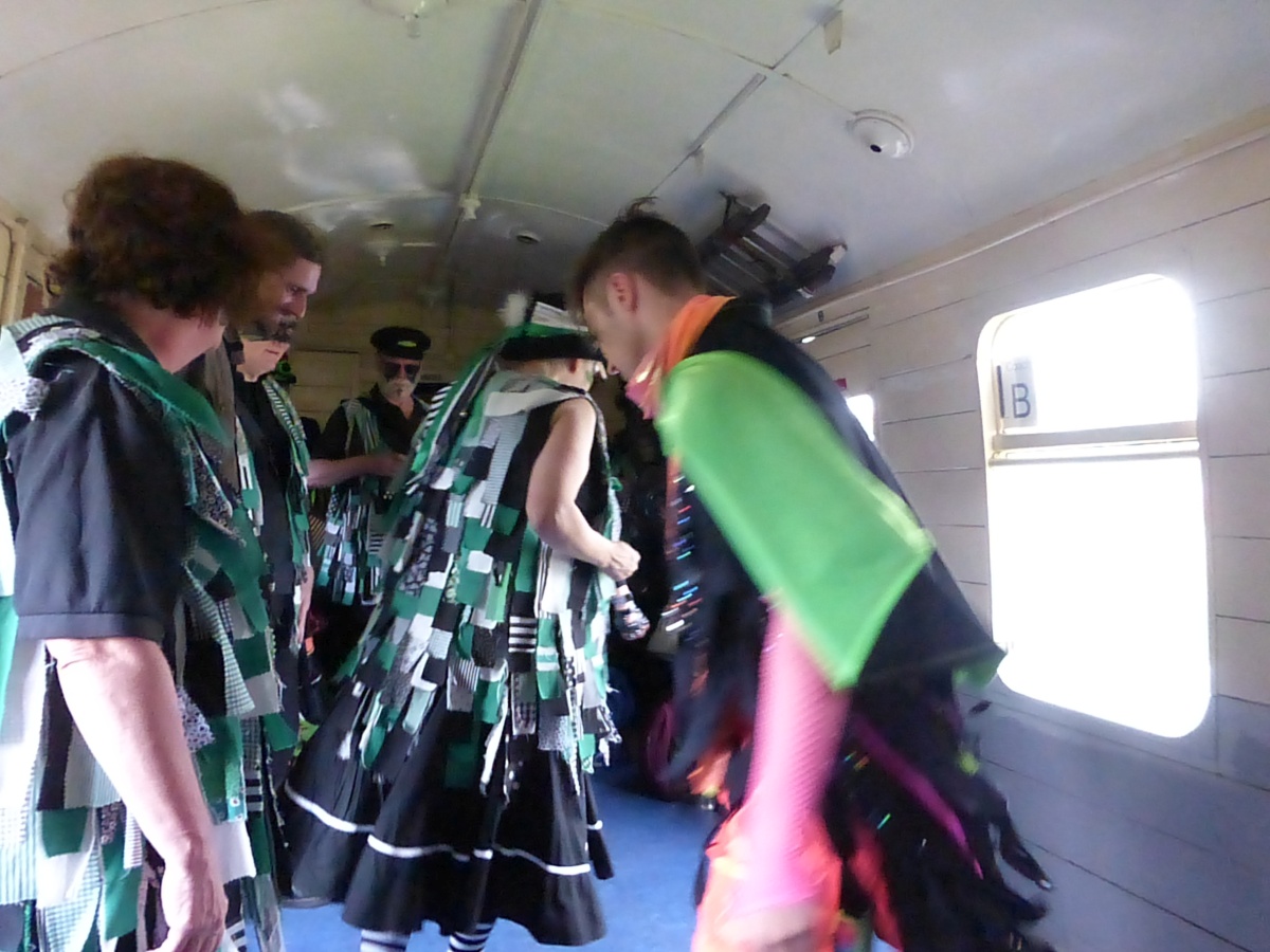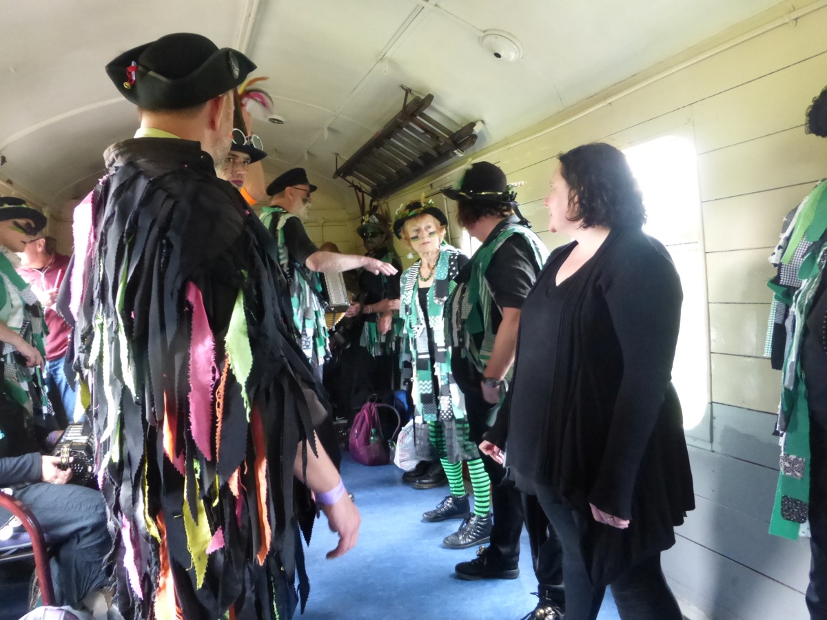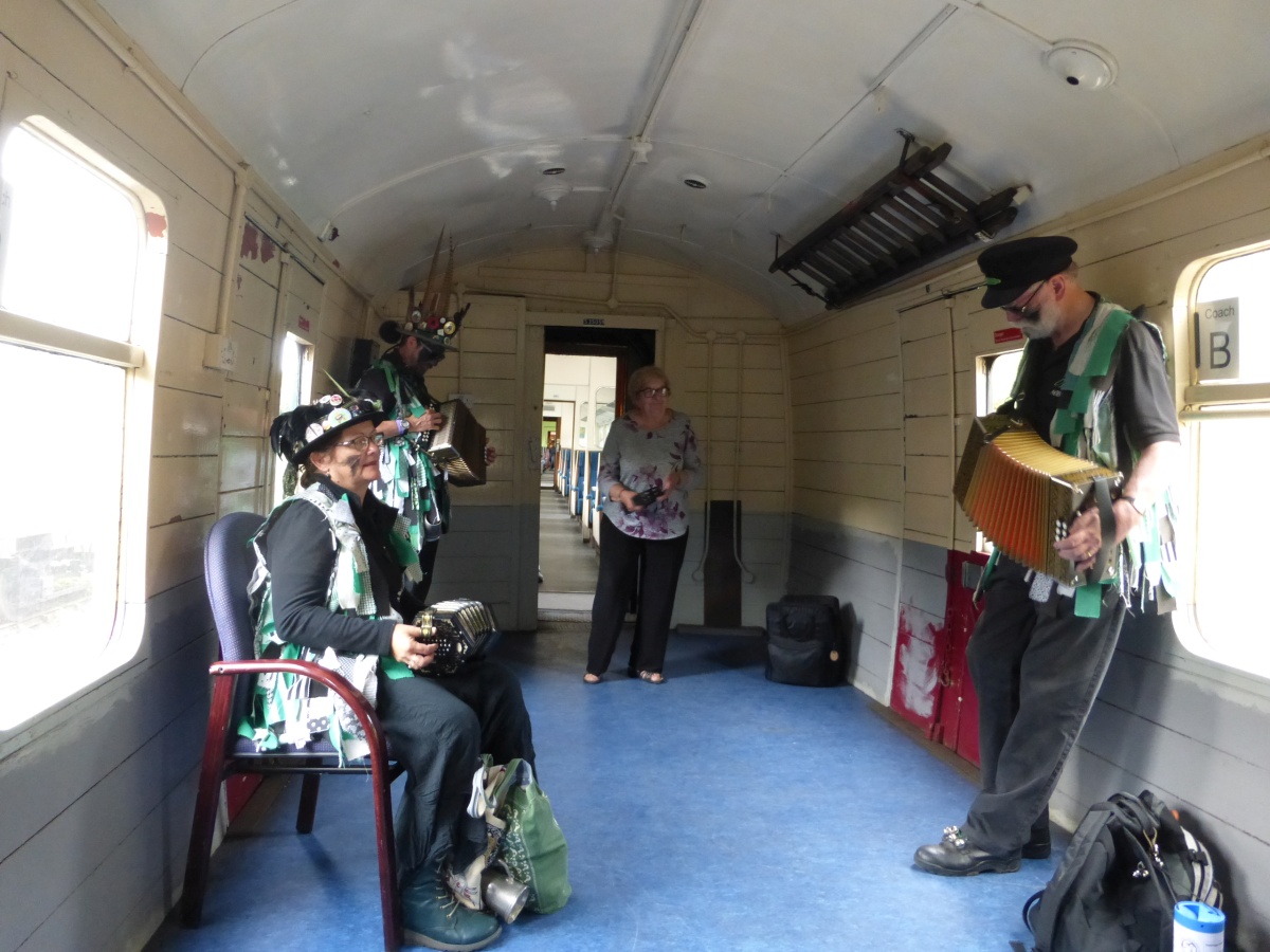 The train to Corfe CastleI think there was probably a spot at The Red Lion, then it was time to take the train up to Corfe Castle with Borderline Ian, Emma and Sam came with us - here's Ian joining a dance Then all too soon, it was back on the train for the usual music and Guards Van dances |